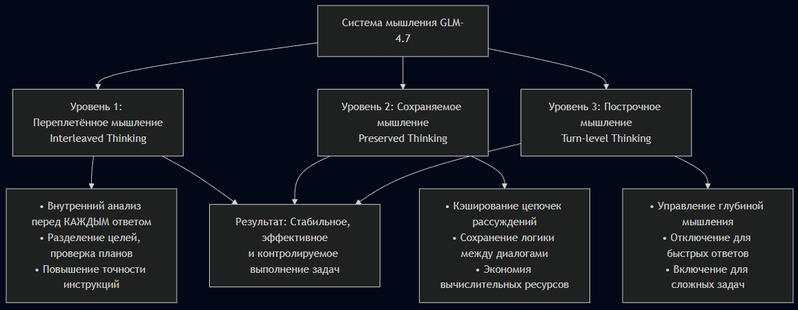 GLM-4.7 — это не просто очередное обновление, а фундаментально переработанная модель, специально оптимизированная для агентного программирования (Agentic Coding) и выполнения сложных многошаговых задач.